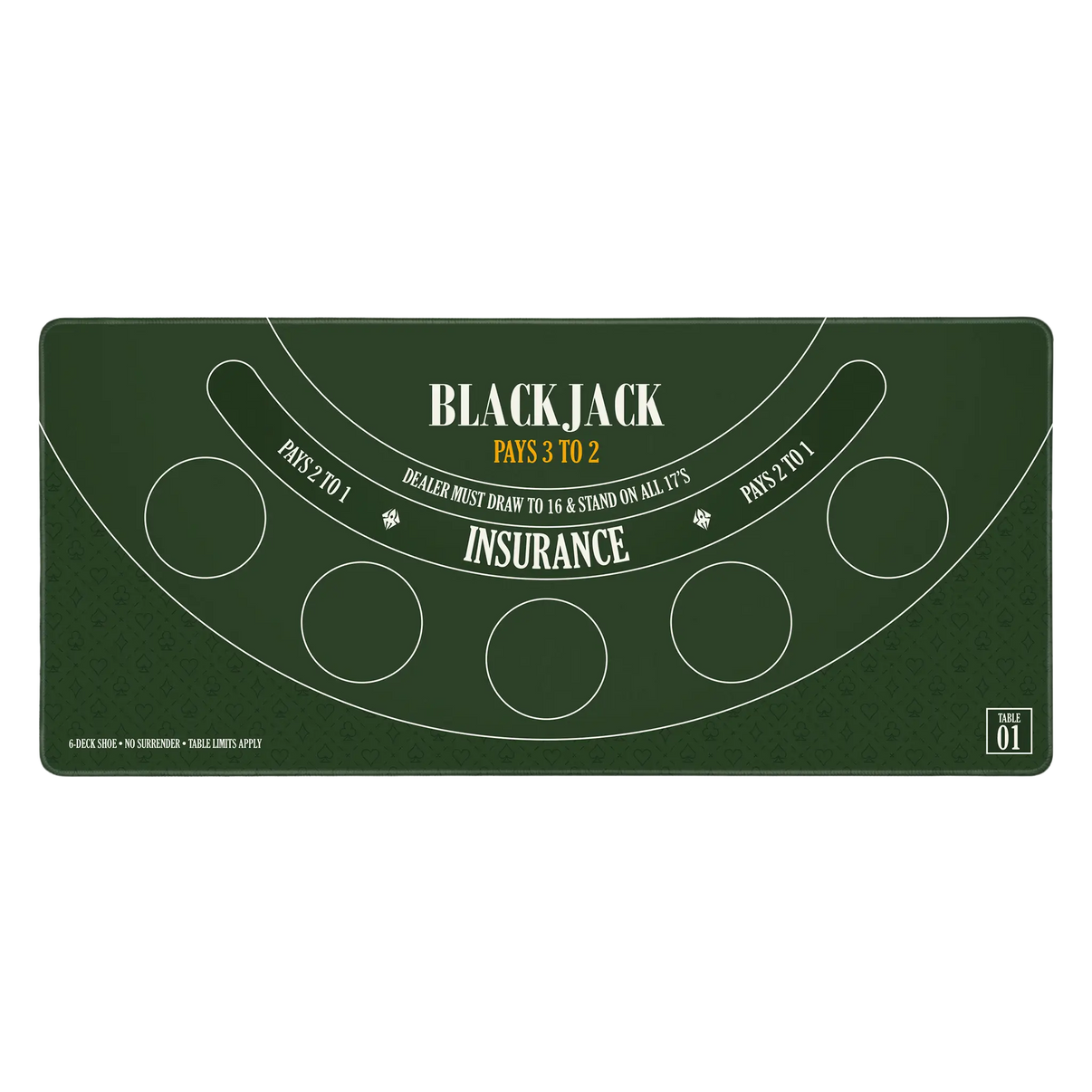 De Blackjack Klassiek muismat brengt de vertrouwde casinostijl naar je bureau. Met een traditionele layout, duidelijke inzetvelden en herkenbare regels speel je overzichtelijk en zonder afleiding. De groene tafelkleur geeft een authentieke, tijdloze uitstraling.