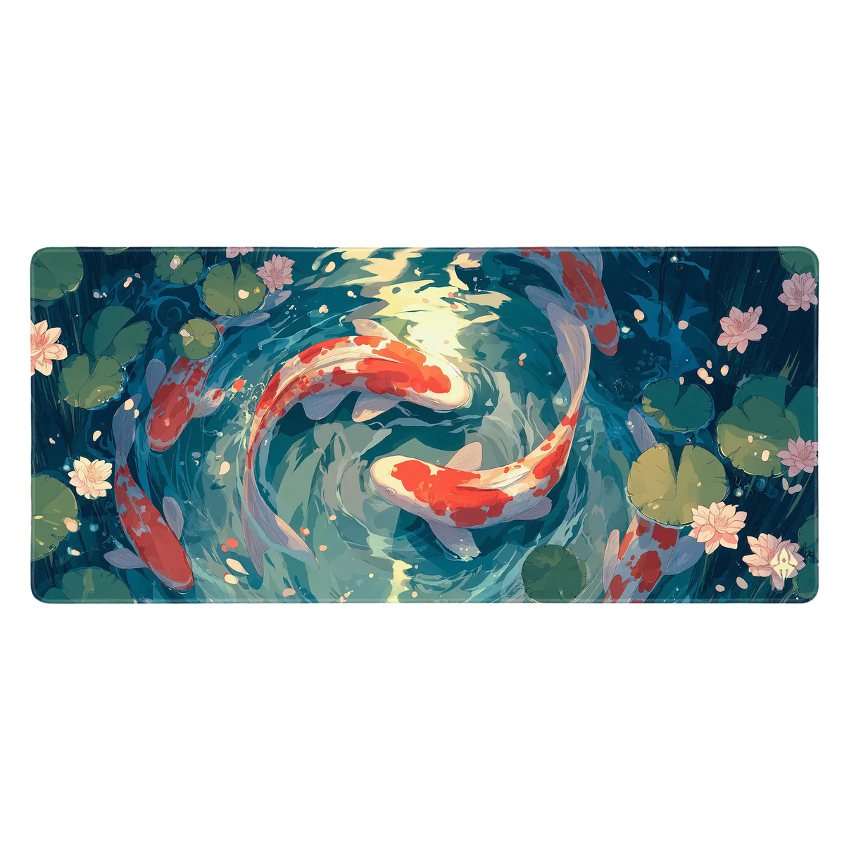 Koimori is een rustgevende explosie van kleur en beweging, waarin twee sierlijke koi’s in een draaiende dans de harmonie van water en leven verbeelden. Omringd door waterlelies en zachte bloesems straalt dit ontwerp balans, elegantie en energie uit. Perfect voor wie z’n setup wil verrijken met kunst die blijft boeien.