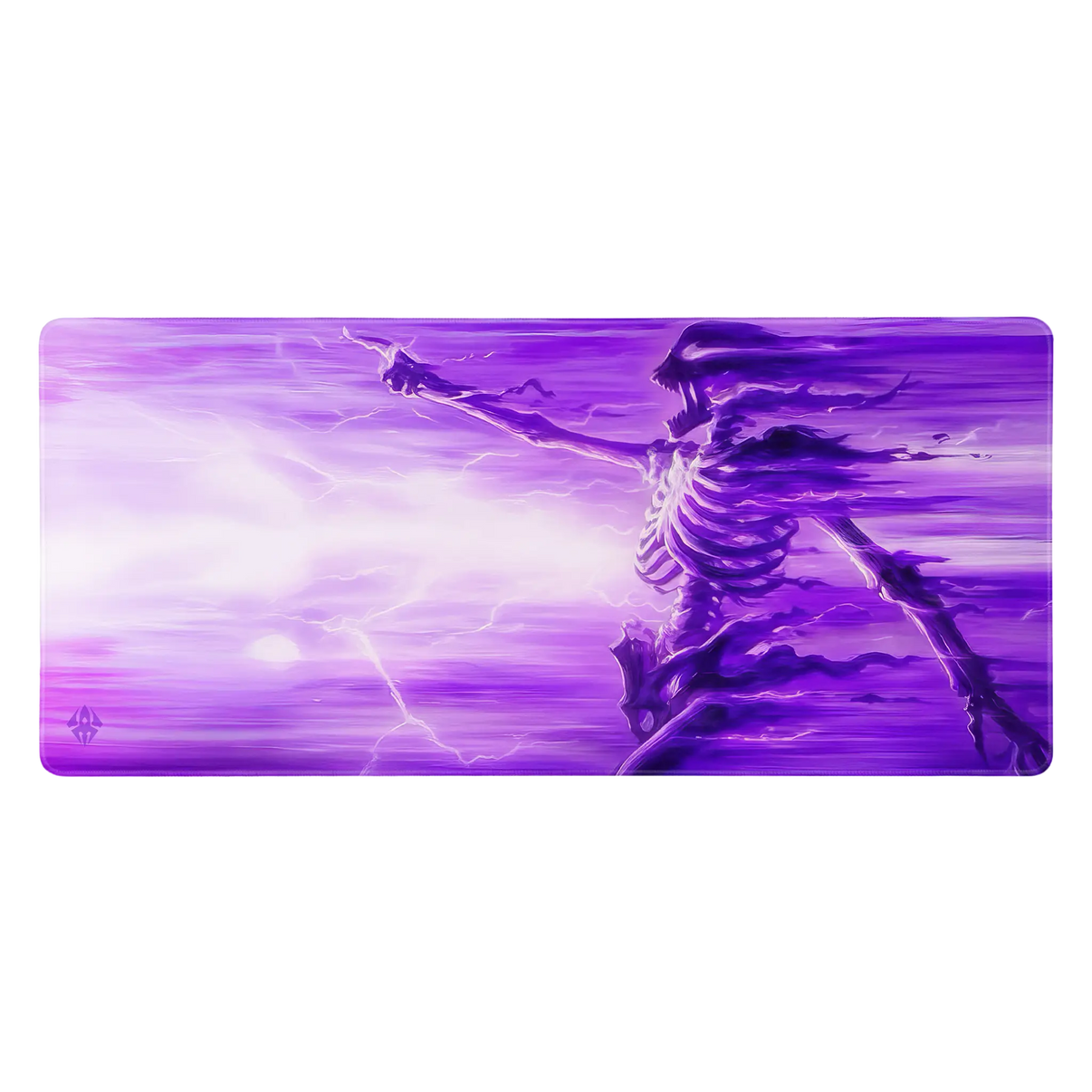 De Vaporized muismat toont een angstaanjagende gedaante die lijkt op te lossen in bliksem en rook, gevangen in een woeste paarse storm. Het skeletachtige figuur straalt kracht en chaos uit, alsof het net uit een andere dimensie is losgebroken. Met zijn intense energie en visuele flair is dit de perfecte muismat voor liefhebbers van dark fantasy, metal vibes en alles wat duister en overweldigend is. Een statement piece voor je setup.