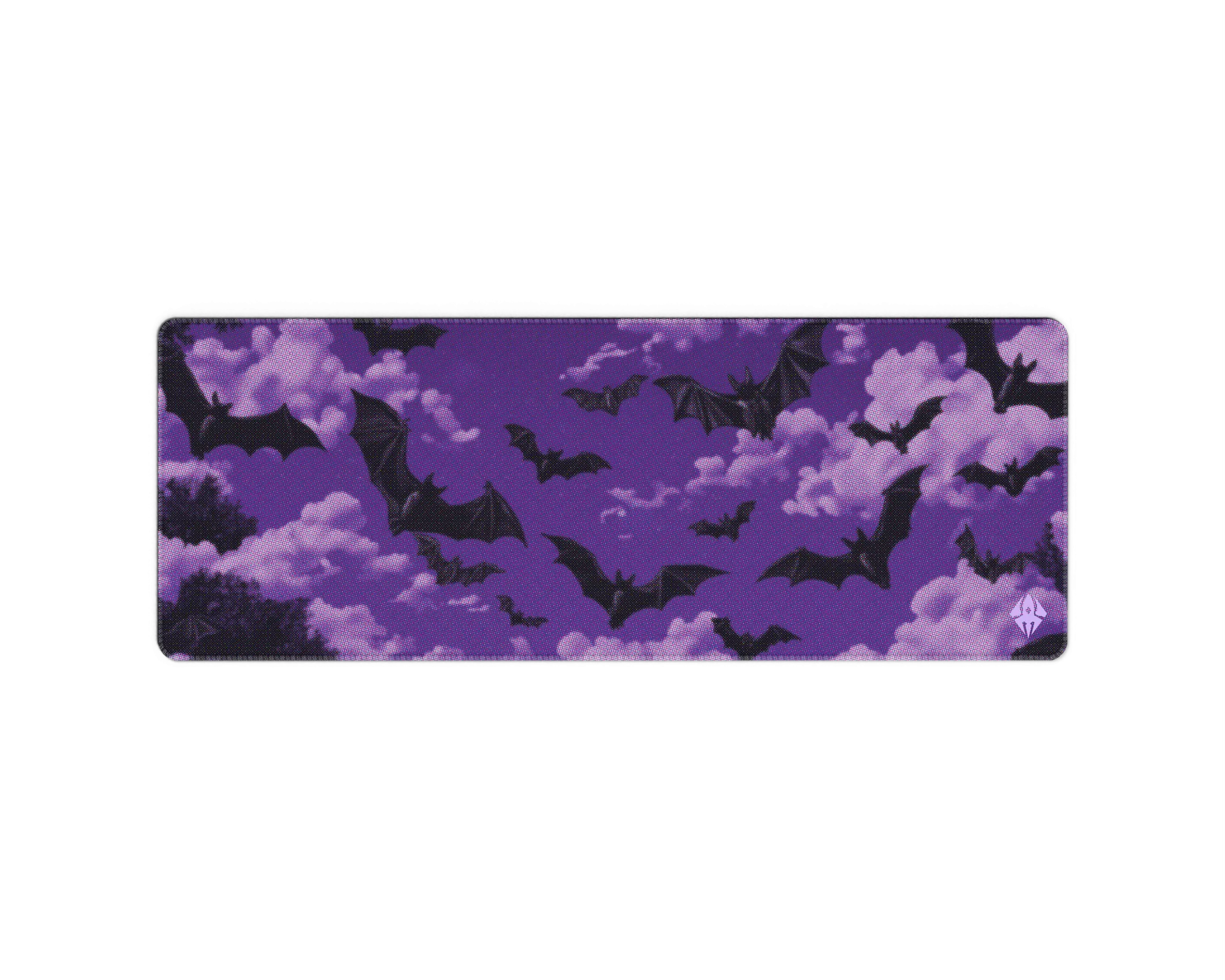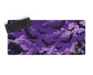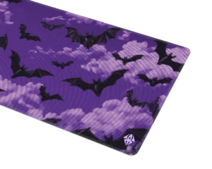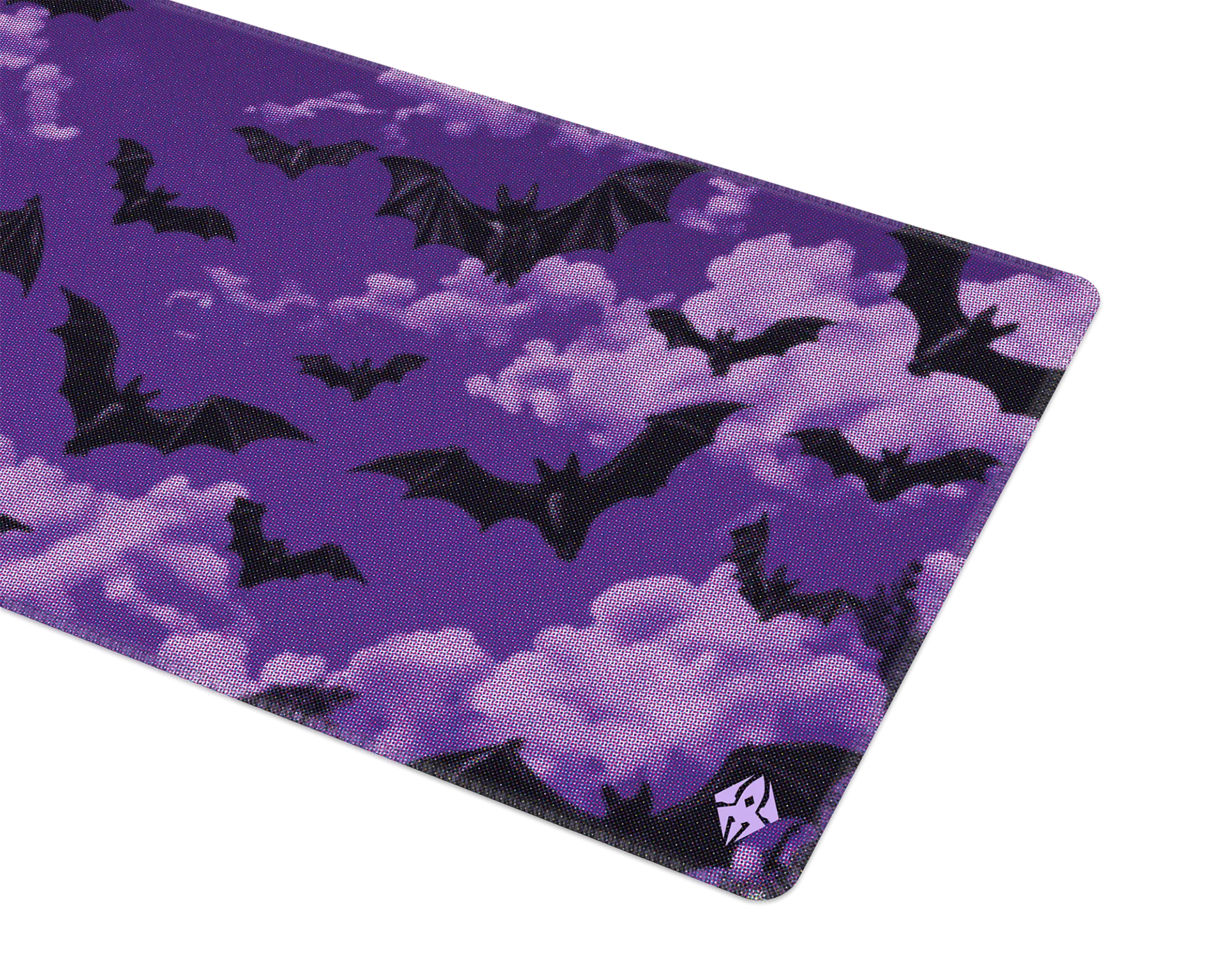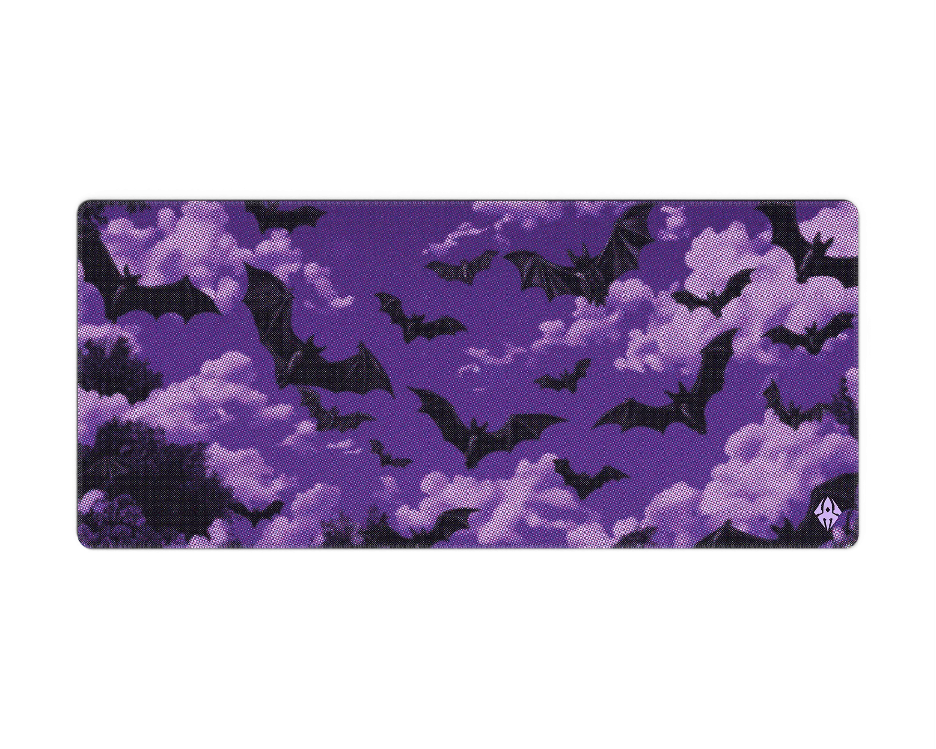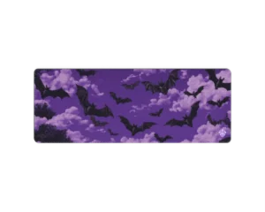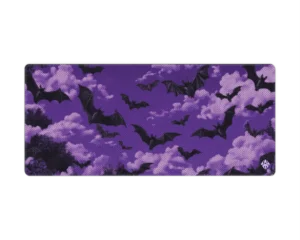 De Halftone Bats muismat combineert retrostijl met Halloween-vibes in een opvallend paars-zwart kleurenpalet. Zwermen vleermuizen doorkruisen een hemel vol wolken die zijn opgebouwd uit een klassiek halftone rastereffect, wat zorgt voor een gedrukte, pixelachtige uitstraling. Dit speels-duistere ontwerp is perfect voor liefhebbers van grafische prints, vintage textures en een setup met karakter. Een muismat die stijl en sfeer laat samensmelten.